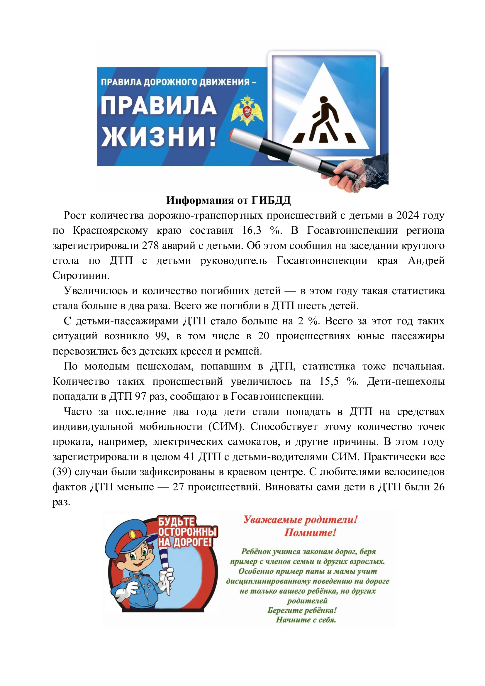 “Дорогие родители! Уже в этом году в дорожных происшествиях мы потеряли троих детей! Все они погибли, будучи пассажирами. Двое из ребят перевозились родителями с нарушениями.