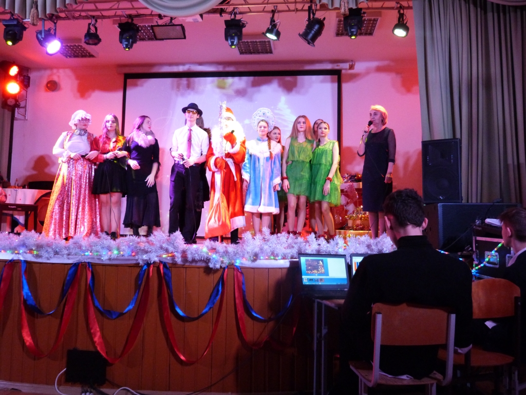 Вечером учащиеся 8-11 классов, педагоги и гости школы с огромной радостью встретили долгожданный новогодний мюзикл «Крашная Шапочка или Новогодний трэш» по мотивам сказки «Красная шапочка». Яркие музыкальные номера, а также великолепное актёрское мастерство персонажей сказки Крашная Шапочка (Анастасия С.), Серый волк (Данил К.), Маман Крашной Шапочки (Дарья К.) Бабушка (Рината Ш.), Охотник (Александр Р.), Дед Мороз (Андрей Г., Алексей К.) и Снегурочка (Оля К.) и танец «Ёлочки» от учениц 11 класса Анастасии М., Анастасии В., Екатерины О., Оли К., Алены Л. не оставили никого равнодушными. С самого начала мюзикла сказочные герои песнями, танцами, юмором увлекли зрителей в волшебный мир новогоднего представления. Новогодний вечер продолжился конкурсом «Самый новогодний класс», в котором ребята, участвуя в играх и конкурсах, выигрывали титулы «Самый поющий класс», «Самый дружный класс», «Самый танцующий класс», «Самый современный класс», «Самый крутой класс», «Самый стильный класс». Каждый класс приготовил новогоднее поздравление: танцы, мини-сценки, песни и видео-поздравления. В итоге титул «Самый новогодний класс» выиграли 11 класс и 5Б. Все участвовали в новогодних конкурсах, пели, водили хоровод вокруг ёлки, веселились. Новогодний праздник – чудесный праздник, связанный с надеждами на лучшее в грядущем году, с ожиданием исполнения всех желаний. Несколько часов пролетели, как один миг. Вот так наша школа праздновала Новый год, весело и дружно. А впереди новогодние каникулы… и самые удивительные дни.