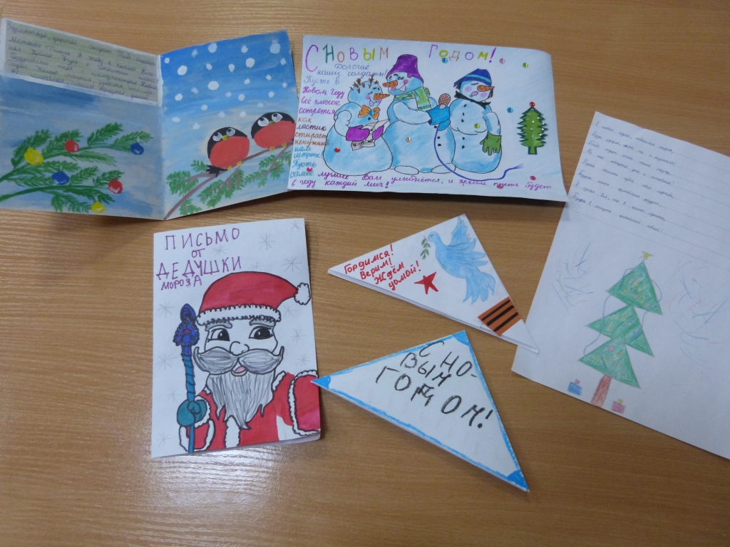 И вновь это предложение нашло широкий отклик у ребят нашей школы: ими подготовлены красочные самодельные открытки с пожеланиями для военнослужащих и отправлены в МБУ ДО «Радуга» для дальнейшего вручения адресатам. Детские поздравления несут особую ценность. Ведь теплота, исходящая от них, способна пусть и не в полной мере, но хоть в какой-то степени окрасить солдатский быт, согреть наших военных в холодных блиндажах, укрепить их моральный дух.